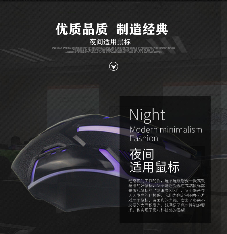 工厂直销游戏鼠标七彩发光鼠标家用办公商务有线USB三键光电鼠标
