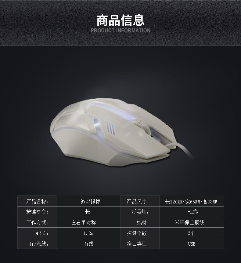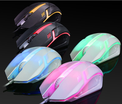 工厂直销游戏鼠标七彩发光鼠标家用办公商务有线USB三键光电鼠标